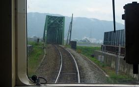 (左右とも:吉野川を渡る) 讃岐白鳥〜引田間も海岸沿いを離れて、低い峠を越える。さらに讃岐相生を過ぎると、いよいよ大坂山越えにかかる。国道は鳴門市へ迂回するのに対して、鉄道は大坂山峠を短いトンネル10個と大坂山トンネルで越える。このルートは、四国のみちにも指定されているくらいだから歴史がある。現在も香川県と徳島県で県道1号に指定されている。ちなみに、愛媛県と高知県を結ぶ県道1号は現在その大半が国道494号となり、残存区間は別の番号が振られ、現在は消滅している。この区間、以前のキハ58系はエンジン音を上げてあえぎながら通過したものだが、185系だとそれほどではなかったのか?という気がする。2000系だと実に軽やかに越えていく。 さて、私は昨年も重宝した2万5千分の1の地図と同じく昨年のダイヤに基づいた列車行き違い表を持参しているのだが、実は最近高徳線で特急が1往復増えたとき、単にそれだけだと、それ以上何も考えていなかった。が、実際にはかなりダイヤに変更があることに気付かなかった。例えば、今日の65Dを例にとると、昨年は66D(現68D)とは志度で退避していたのが、造田で退避させる。また、68D(現70D)とは阿波大宮で退避させていたのが、板野退避になっている。結構大きくダイヤ改正されていたことに気づく。 列車は吉野川を渡る。かつては鳴門方面から徳島へ鉄道を敷こうとする機運があったというが、他の四国1県と異なったのはこの吉野川であった。最初に鉄道が延びたときは、この川を越せずに渡船で越えたという。国鉄の場合は、現在の鳴門線撫養〜徳島間が大正5年7月1日に開通している。高松口よりも先に開通したわけである。さらに、徳島線となると、徳島〜鴨島間は明治32年2月16日に開通している。その高徳線も吉野川は最も川幅が短いであろう、飯尾川、鮎喰川が合流する直前に渡る。その川上を20年前にはなかったはずの四国三郎橋が架けられている。高架となった佐古を過ぎて、10時56分徳島着。雨は上がったようだ。 徳島では、すでにやることを決めている。次の列車までは59分。昨年の失敗を繰り返さないために、すぐ駅ビルのうどん店に駆け込む。が、1年前と違っていたのは、かずまるの食事速度がかなり早くなったことである。ゆっくりと食べられた。食べていると、「通称お子様ランチ」が次々と注文される。注文しているのは、先ほど列車で同行した子供づれである。「次の列車はゆうゆうアンパンマンカーの指定席がとれた」という声が聞こえる。次の列車も同行することになるらしい。 10月29日(土)徳島〜阿波池田間15D特急剣山5号 徳島駅でゆっくりと昼食をとっていると、これまたゆっくりと列車の出発時刻が迫ってくる。今度は堂々とゆうゆうアンパンマンカーの指定席に座れる。が、全員先ほど見た顔である。我々と例の1組が加わって、ほぼ満席だから、先ほどの団体は1組ではなく、複数のツアーで、一部は徳島で下車し、一部はそのまま阿波池田に行くのであろう。11時55分徳島発。先ほどの65Dのうち、後ろ1両が切り離されて、今度は3両編成となって出発する。切り離した1両は徳島駅留置線にいる。この車両が最終的にどうなるかについては、今年2月の妻のバースデイ切符旅行で確認している。 (左:佐古駅、右:徳島駅での15D特急剣山5号【拡大可】) 先ほども述べたとおり、徳島〜鴨島間は明治32年2月16日に開通している。ちなみに、高知駅の開業は大正13年だから、松山が一番遅かったことになる。まあ、吉野川を越すのは困難だったろうが、吉野川の南側の平野に線路を通すことは容易だったのだろう。もっとも、徳島には四国で唯一私鉄がないから、伊予鉄道を考えれば納得はできる。なお、旧街道は吉野川の北側、鳴門から板野駅を通るのが通称撫養街道であり、そちらのほうが歴史は深そうだ。 (鴨島付近の地図はこちらへ) > 国土地理院の地図へ >> 鴨島はかつては結構栄えた街なのであろう。駅を過ぎると小規模ながら遊園地まである。現在も合併が進んで、吉野川市となり、吉野川の北側には阿波市ができた。20年以上の記憶を持つ私には、ややこしくて仕方ない。その徳島線であるが、明治33年8月7日に阿波山川駅までかいつうした後は、隣の川田、これまた新参者の市である美馬市の中心地穴吹を越えて一気に土讃線阿波池田駅まで開通したのが大正3年3月25日である。開業に15年近くもかかった阿波山川と川田の間には何があるのかといえば、現吉野川市舟戸から現美馬市成戸で吉野川南岸に山が迫っているからであろう。山が迫る東西の地名を見ても、また、その後一気に阿波池田まで開業したことを考えると、この狭隘な場所を鉄路で越えるのが困難だったのかが判るような気がする。その後はうとうとしていたような気がする。かずまるは今回も一度も座席に戻っては来なかった。阿波池田13時05分到着。 10月29日(土)阿波池田〜宇多津間44D特急南風14号 阿波池田での乗換えは、わずか2分。だが、昨年と違ってい